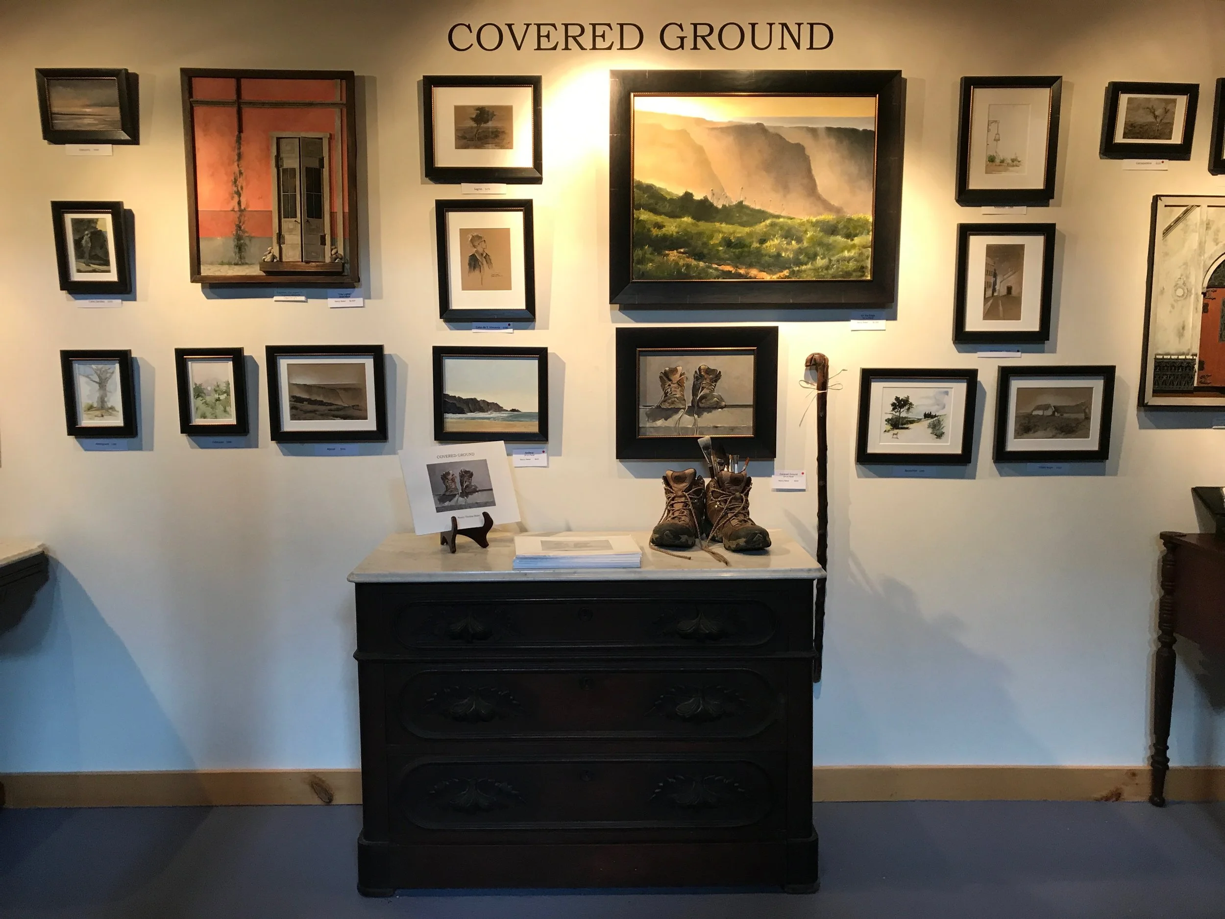 In August I had an exhibition at Mars Hall Gallery that featured paintings and mixed media work, as well as an accompanying book, that chronicled a long hike I took through Portugal. I walked nearly 450 miles, from the Spanish border to the southeastern point called Cabo Ste. Vincent. From there I turned north and hiked a magnificent trail called the Rota Vicentina, that literally clung to the dramatic cliffs of the western Portuguese coastline. It took me nearly a month and once home in late 2017, I spent the next few months collecting letters and journal entries, sketches and photographs to publish in a book, which is story of my solo adventure but also a collection of meaningful memories, of loss and of relationships across the span of my life. I worked for months on larger oil paintings from my sketches and created facades with operable doors, that held paintings, inspired by the village homes I passed on my hike, that held untold stories and mysteries.